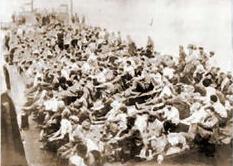 Later, in januari 2015, krijg ik van Gerard Clements een foto toegestuurd uit mei 1940. Op die foto eveneens een groot aantal Belgische krijgsgevangenen op een schip dat naar Duitsland ging.